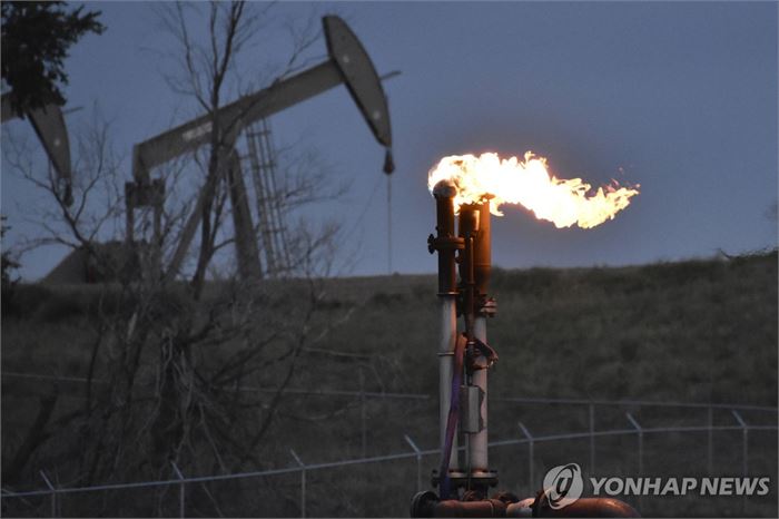 미국의 유정에서 유출된 메탄이 타는 모습 [AP 연합뉴스 자료사진. 재판매 및 DB 금지]