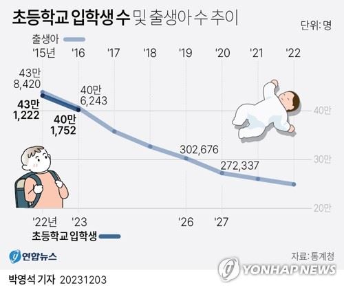 X 저출산의 영향으로 2017년생인 내년 초등학교 1학년 학생수가 사상 처음으로 40만명 밑으로 내려갈 것으로 보인다. 2017년 이후 저출산에 더 속도가 붙은 만큼 30만명선을 사수하지 못하는 것도 '시간 문제'로 전망된다. (서울=연합뉴스) (끝) 0 0 결혼정보신문 결혼정보신문 wmarrycom@naver.com 결혼정보신문의 기사 더보기 저작권자 ⓒ 결혼정보신문, 무단 전재 및 재배포 금지