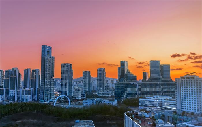 저 멀리 도시의 스카이라인과 아름다운 호수의 모습이 한눈에 잡혔다.