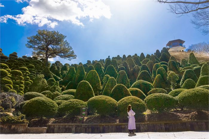 전망대 아래쪽 작은 동산을 둘러싼 향나무도 매력적이다.