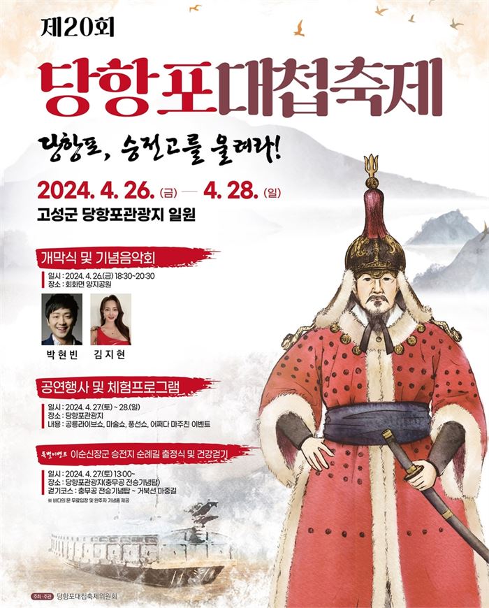 경남 고성군은 오는 26일부터 28일까지 회화면 양지공원 일대에서 '제20회 당항포대첩축제'를 연다고 18일 밝혔다.