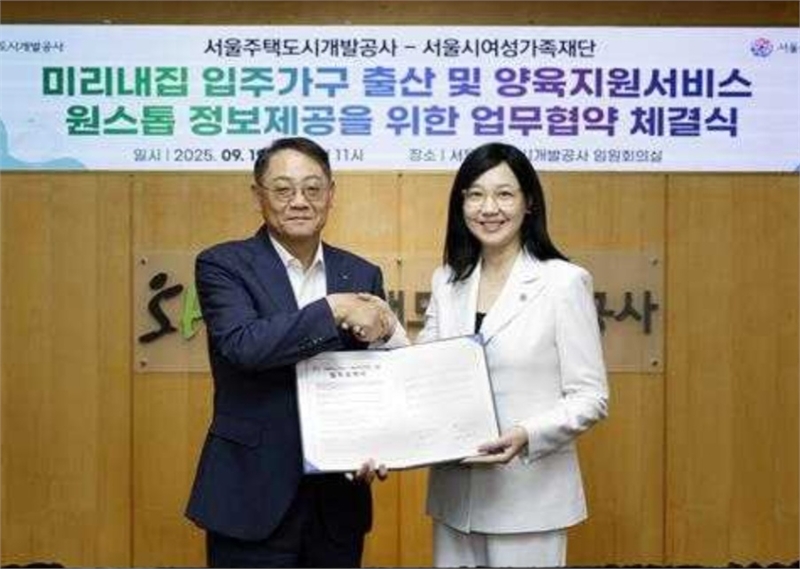 서울주택도시개발공사(SH)가 신혼부부 맞춤형 주거공급 브랜드 ‘미리내집’ 입주민을 대상으로 출산과 양육 지원 서비스를 본격 도입한다. SH는 19일 서울시여성가족재단과 업무협약을 체결하고 오는 11월부터 입주민을 위한 단계별 맞춤형 지원을 시작한다고 밝혔다.이번 협약의 핵심은 임신 준비 단계부터 초등학생 자녀 양육 시기