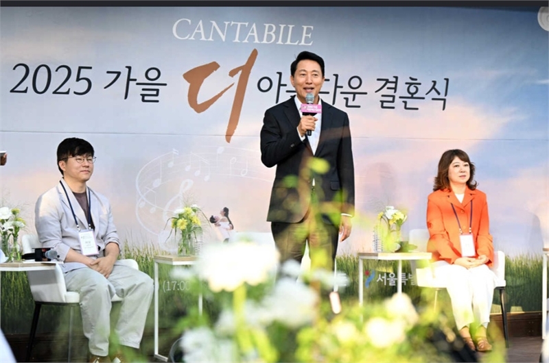 서울시는 지난 25일 공공예식장 ‘남산한남웨딩가든’에서 시민들과 함께 검소하면서도 실속 있는 결혼문화의 방향을 모색하는 토크콘서트「더 아름다운 결혼식 칸타빌레」를 개최했다고 26일 밝혔다. 이번 행사는 화려함과 과시적 소비로 점철된 기존의 결혼문화를 돌아보고, 경제적 부담을 최소화하면서도 품격 있는 결혼식을 만들어갈 수