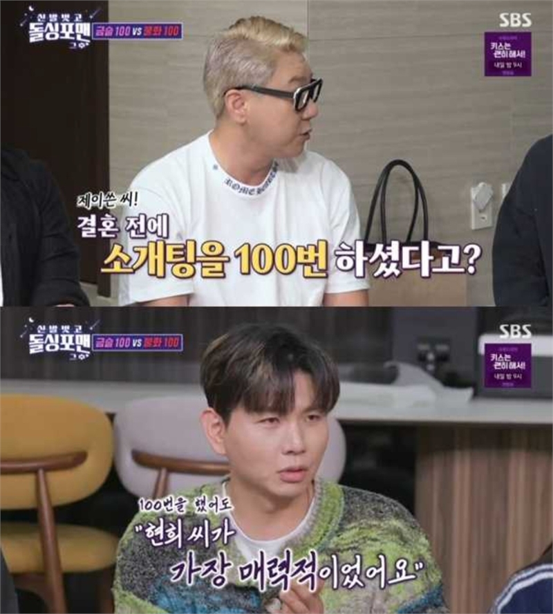 방송인 제이쓴이 아내 홍현희를 만나기 전, 무려 소개팅을 100번이나 했다는 사실을 공개해 화제가 되고 있다.11일 오후 방송된 SBS 예능 프로그램 ‘신발 벗고 돌싱포맨’에는 홍현희·제이쓴 부부를 비롯해 신기루, 폴킴이 게스트로 출연했다. 이날 제이쓴은 결혼 전의 연애사를 솔직하게 털어놓으며 스튜디오의 이목을 집중시켰