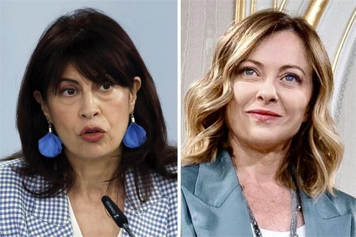 멜로니 이탈리아 총리(오른쪽)와 레돈도 스페인 양성평등부 장관 [이탈리아 안사(ANSA) 통신 캡처. 재판매 및 DB 금지]