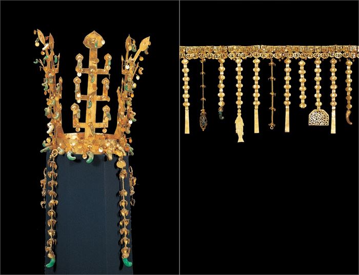 '금관총 금관, 그리고 이사지왕' 주요 전시품 충남 보령 석탄박물관과 전북 장수 장수역사전시관에서 각각 전시할 예정인 유물. 왼쪽부터 국보 '금관총 금관 및 금제 관식', 국보 '금관총 금제 허리띠' [국립중앙박물관 제공금관총 금제 허리띠]