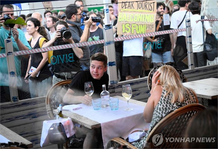 지난 6일에는 수천 명이 바르셀로나 도심에 모여 관광객들을 향해 물총을 쏘면서 "관광객은 집으로 돌아가라"고 외치는 시위를 벌였다.