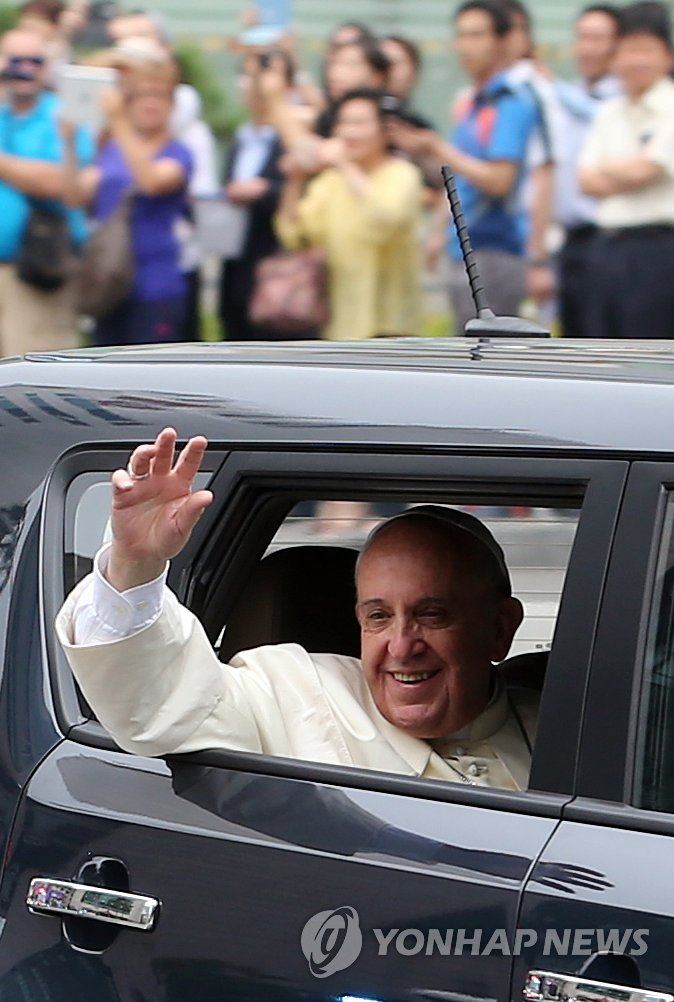 한국 방문한 프란치스코 교황(2014.8.14) [연합뉴스 자료사진]
