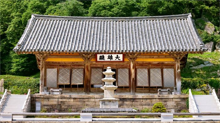 대웅전은 정면 3칸, 측면은 이보다 한 칸 더 많은 4칸의 특이한 구조를 가진 맞배지붕 집이다.