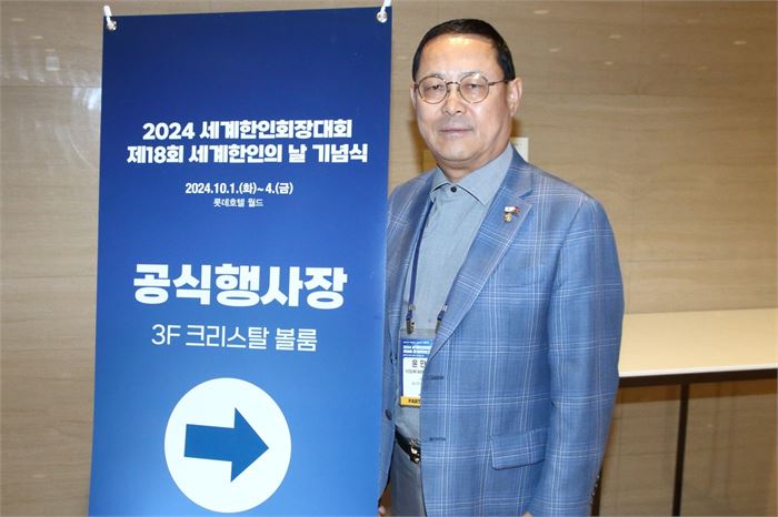 '2024 세계한인회장대회' 참석차 방한한 윤만영 필리핀한인총연합회장 (서울=연합뉴스) 성도현 기자 = 재외동포청이 주최한 '2024 세계한인회장대회' 참석차 방한한 윤만영 필리핀한인총연합회장이 지난 1일 행사장인 서울 송파구 롯데호텔월드에서 연합뉴스와 인터뷰를 한 뒤 포즈를 취하고 있다. 2024.10.3 raphael@yna.co.kr