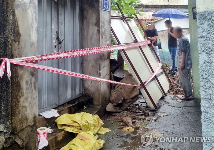 지난 6월 광주서 장맛비에 무너진 빈집 담벼락 [연합뉴스 자료사진]