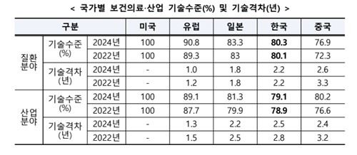 보건복지부와 한국보건산업진흥원은 이 같은 내용의 2024년 보건의료·산업 기술 수준 평가 결과를 31일 발표했다.