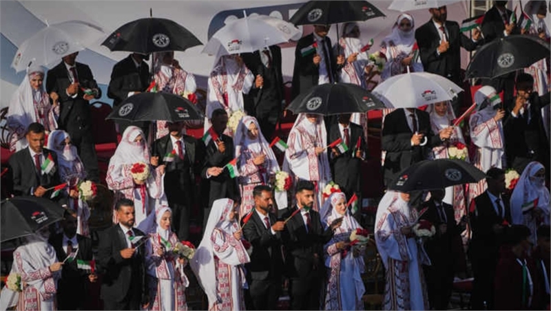 이번 행사는 아랍에미리트(UAE)의 후원을 받는 인도주의 단체 ‘알 파레스 알 샤힘’이 마련했다. 단체는 결혼식 진행과 함께 각 부부에게 소액의 지원금과 생필품을 제공하며 새로운 출발을 응원했다.
