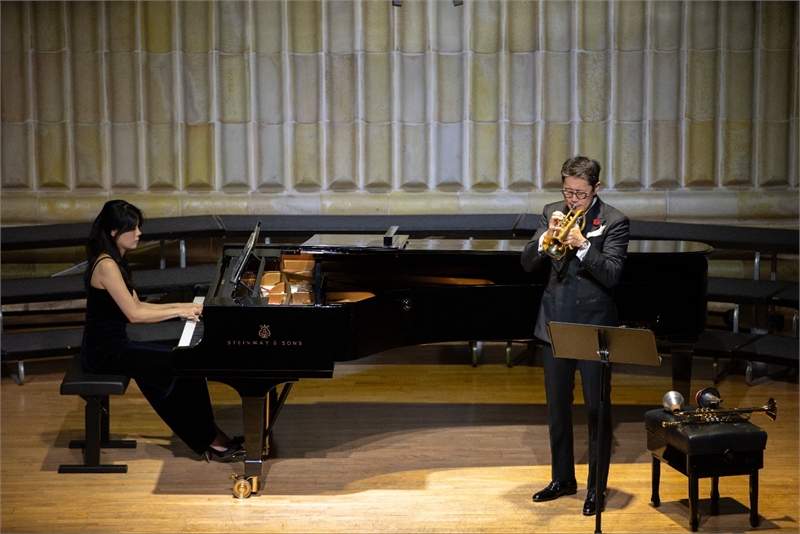 2부에서는 트럼펫 연주자 성재창이 ‘Prelude 1·2·3’과 아르방의 대표곡 ‘Carnival of Venice’, 캐럴 ‘The First Noel’을 차례로 선보이며 공연장의 집중도를 높였다. 폭발력과 섬세함을 오가는 연주는 관객의 큰 호응을 이끌어냈다. 이어 한국예술종합학교 중창팀 리콤펜사는 Stephin Merritt의 II Libro dell’amore와 ‘Il Mondo’를 깊은 화음으로 들려주며 공연의 예술성을 더욱 풍부하게 채웠다.